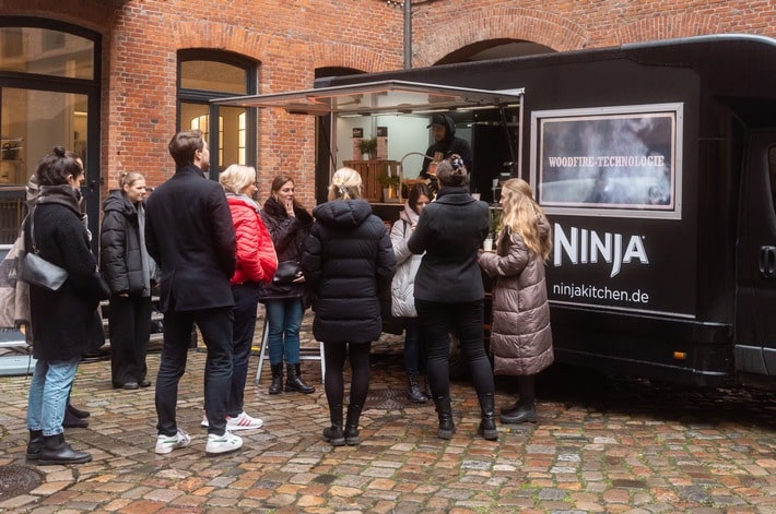 Jetzt wird’s lecker! Mit einer großen Foodtruck-Tour für die Küchenmarke Ninja macht der weltweit führende Haushaltsgerätehersteller SharkNinja Deutschland Lust auf Genuss. Zwischen 6. und 21. November ist der Ninja-Truck unterwegs und macht in diesen zwei Wochen Halt in Berlin, Hamburg, Köln, Frankfurt am Main und München. Im Mittelpunkt der Tour steht die Vorstellung des ersten kabellosen Stabmixers Ninja Blast, des einzigartig vielseitigen Ninja Woodfire Elektrischer Outdoor Ofen und der neuen Heißluftfritteuse Ninja Foodi FlexDrawer 10,4L – und natürlich alles, was man damit schnell und einfach zubereiten kann. Dabei verfolgt SharkNinja ein mehrdimensionales Konzept. Der Foodtruck macht sowohl an öffentlichen Plätzen als auch bei ausgewählten Handelspartnern Halt. Tanja Ohnesorge, Marketing Director Deutschland, Österreich und Schweiz, von SharkNinja: „Mit unserer Tour machen wir Ninja dort erlebbar, wo die Konsument:innen unterwegs sind: auf den Straßen, in der Fußgängerzone oder eben im Elektronikmarkt. Die Tour ist dabei Teil einer großen Markenoffensive, die sämtliche Kommunikationselemente von Digital bis TV und von PR bis Live-Kommunikation umfasst.“ Die Besucher:innen der Tour dürfen sich auf zahlreiche Aktionen, Gewinnspiele, Food for free und den deutschen Top-Influencer René Schmock an den Standorten Berlin und München freuen.