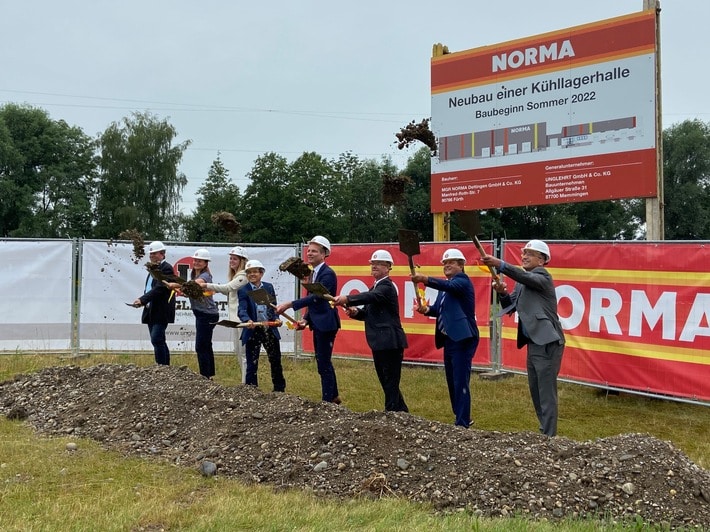 Auch beim Bau des Logistikzentrums setzt NORMA auf Partner aus der Region. Das gesamte Vorhaben soll mit einer Bauzeit von 7 Monaten fertiggestellt werden und Anfang 2023 den Betrieb aufnehmen. Investiert wird insgesamt ein knapp zweistelliger Millionenbetrag. Durch den Neubau kann die weitere Expansion sichergestellt und eine flexible Belieferung des Filialnetzes gewährleistet werden. Mit der Inbetriebnahme des neuen Kühllogistikzentrums entstehen rund 15 weitere Arbeitsplätze am Standort.