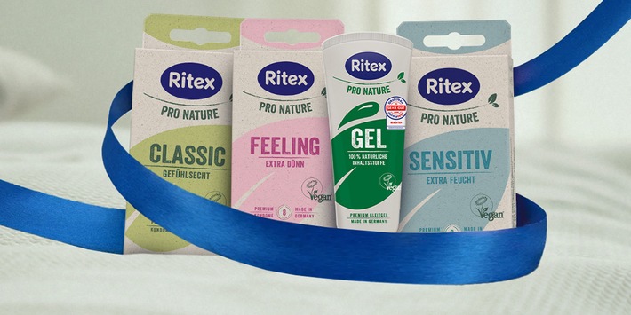 Die Ritex GmbH, Bielefelder Hersteller hochwertiger Kondome und Gleitmittel, erweitert seine nachhaltige Produktrange PRO NATURE um zwei weitere, innovative Produkte. Mit PRO NATURE Feeling wird die Kondom-Range durch ein extra dünnes Kondom abgerundet. Zudem wird das nachhaltige Sortiment nun um das wasserbasierte PRO NATURE Gel ergänzt.
