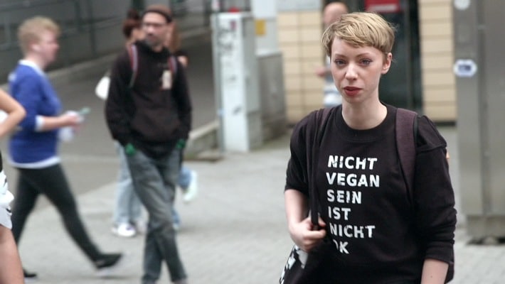 Bei den Recherchen trifft „exactly“ unter anderem auf die Tierrechtsaktivistin Raffaela Raab, die sich im Netz „die Militante Veganerin“ nennt und mit ihren Posts auf Social- Media Millionen Menschen erreicht. In Diskussionen und Protestaktionen schreckt sie auch vor verbalen Attacken nicht zurück, um den Menschen ein schlechtes Gewissen zu machen. „Es ist nicht im Sinne der Tiere, hier meine Sprache zu verwaschen oder meine Wortwahl zu verändern“, so Raab.