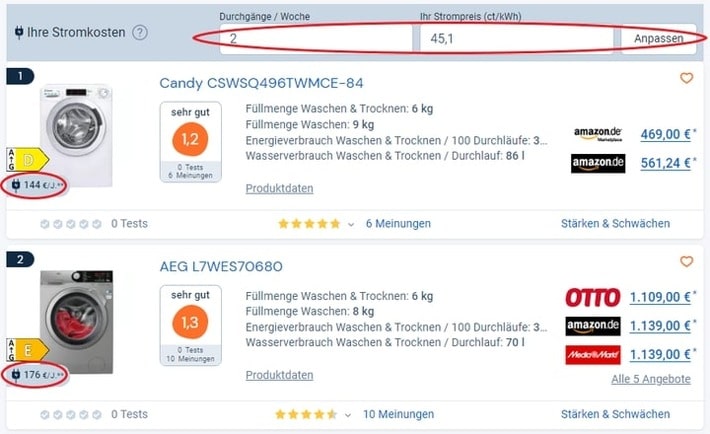 Für diese Produkte gibt es den Stromkosten-Rechner